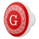 Red Wht Greek Key Rnd Frame Initial Monogram Ceramic Knob