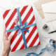 A classic red and white striped holiday wrapping paper featuring red wide stripes on a white background. Available in 6 and 15 foot long 30 inch wide rolls.