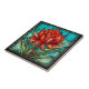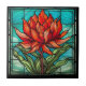 Red Wildflower in Stained Glass Ceramic Tile