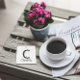 Watercolor wildflowers initial monogram. Elegant typography. Perfect for gift.