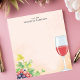 Celebrate the simple pleasures with this elegant, personalised notepad. A classic illustration featuring a glass of red wine and a cluster of grapes with vine leaves adorns the lower portion of the notepad. The soft, warm-toned background adds a touch of sophistication. Add your own custom text to make this a unique and practical item. Perfect for wine lovers, shopping lists, or jotting down tasting notes.