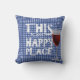 red wine and quote on blue gingham cushion