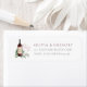 Designed to match our Cheers to Love invitation collection, return address labels feature a bottle of burgundy red wine and two wine glasses on a bed of green watercolor eucalyptus leaves and botanical foliage.