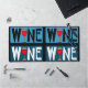 A pattern of wine text with a glass of red wine replacing the letter i is a unique gift design for wine lovers and vintners at birthdays, holidays and wine tasting events.