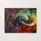 Red Wing Forest Dragon with Red Flowers Jigsaw Puzzle