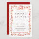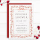 This elegant couples shower invitation features a watercolor red berry frame with a charming red bow and stylish typography.
