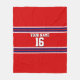 Red with Navy White Stripes Team Jersey Fleece Blanket