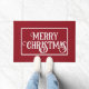 Beautiful red doormat with white text inside a white box. The text is a creative typography that provide a holiday vibe. You may change the text by selecting “Personalise this design” before you add this item to your cart. Change it to Happy Holidays, your name or something else. A new door mat is a simple way to spruce up your home for the holidays.