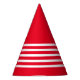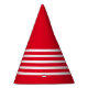 Red with white stripes clown birthday party paper cone hat. Simple and cute cherry red and bright white party theme.