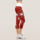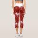 Red with White Transparent Flower Capri Leggings