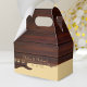 Two tone colour block red wood and tan brown guitar wedding favour box for guests. Personalise it by adding the bride and groom wedding details. Great for music lovers and a country rustic wedding theme.