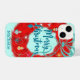 This retro Christmas phone case has a hand painted aluminium red wreath with classic retro ornaments, starburst and atomic symbols. This is a midcentury modern styled Christmas case is perfect to celebrate the holiday season. You can personalise this phone case with your own holiday greeting, name and background colour to match your style.