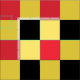 Fabric with seamless red, yellow and black chequered pattern in colours of flag of Belgium