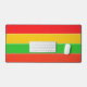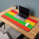 Bright and cheerful striped patterned desk mat featuring red, yellow and lime green. Can add text or initials to personalise.