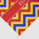 Red, Yellow and Blue Large Chevron Zig Zag Pattern, Red Ribbon Name Monogram Label