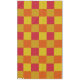 Beautifully patterned bath towel using mini squares of red, orange and yellows.
