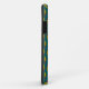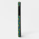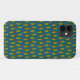A stylish Case-Mate Case to protect your iPhone 5/5s smartphone, with a decorative 'tribal' pattern in Bright Red, Yellow-Green and Black on a Teal Background. Part of the Posh & Painterly "Jungle Drums" collection.