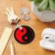 Red and black yin yang symbol keychain.