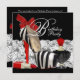Elegant red zebra party invitation. This beautiful red zebra party invitation features a black and white lace background, black zebra high heel shoe, perfume bottle and red lipstick. This elegant and fun red zebra high heel shoe birthday party invitation is easily customised for your event by simply choosing the "Customise it!" button to begin adding your event details, font style, font size & colour, and wording. Please note - all of the card and invitation designs you will find on Zazzle are printed graphics with no actual jewels, bows, raised, embossed, or added parts or pieces.