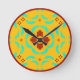 Red Zia Symbols New Mexico Turquoise Feathers Round Clock