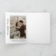 This elegant folded Thank You card features a gold frame with a watercolor rose and greenery branch as a template background. The words “Thank You” are written in white font on a dark red background. The couple’s name, date, and place of the wedding are also included in black font on a white background. An elegant photo of the couple is added to the card with their names and the date and place of the wedding written below it.