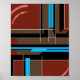 Reddish Brown Geometric Design with Blue Lines Poster