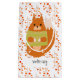 This gift bag features a reddish brown squirrel in a warm green sweater. The background has a pattern of red and orange berries. The text "winter cosy"can be personalised with your own text or a name.