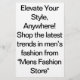 Step into a world of unmatched style at "Mens Fashion Store" where fashion meets functionality. Explore our exclusive collection of men's clothing and accessories designed to elevate your look, from casual essentials to sophisticated formal wear. Shop conveniently from our online store and enjoy fast shipping, premium quality, and unique designs tailored to your taste. Whether you're refreshing your wardrobe or looking for a special piece, we have everything you need to express your style with confidence. Visit us today and transform the way you dress!