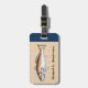 This luggage tag is perfect for the fishing enthusiast with an artistic redfish on a faux natural weave background. Shown here with a dark blue accent colour with brown text.