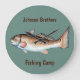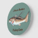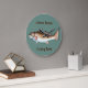 This clock is the perfect addition for any sports fishing lover's decor. The clock features an artistic redfish, drawn dot by dot by hand on the computer, on an outdoorsy green blue background.