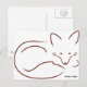 An outline drawing of a curled up red fox, with its head up and looking at you. **Note** Appearing under the red fox illustration, is the taxonomy term "Vulpes vulpes"