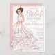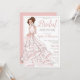 Glam bridal shower invitation features red hair (auburn) bride in silver glitter wedding gown. Bridal heels and clutch on back. Choose your favourite hairstyle! Contact me if you need a specific eye colour.