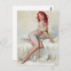 Redhead in Slippers Pin Up Postcard