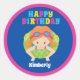 Redhead Swim Girl Custom Pool Party Happy Birthday Classic Round Sticker