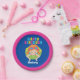 Awesome kids swimming pool party Happy Birthday paper plate for a redhead child on the swim team during the summer. Features a bright, fun pop of colors and an adorable swimming girl in an inner tube. Customize for a special children's celebration decor.