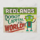 A funny Redlands California vintage travel design featuring a friendly robot with fun retro style text that says, "Redlands, Robot Capital of the world!"