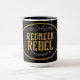 Cool coffee mug for those livin' the Redneck Life. "Redneck Rebel" text with tribal tattoo style flourish on black background