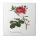 Wine colour Redoute Rose print with signature on white ceramic tile.