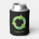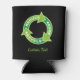 Green enviromental symbol, circle with arrows and the words reduce, reuse, recycle. Custom background colour. Custom text.