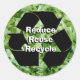 Stick it for awareness! You can promote a "green" message when you use this round template sticker with a green shredded, crinkled paper background. The text is centred within the green Mobius Loop recycle symbol. Keep this environmental message or fill in the template block with your words. Or click "Customise it" to select a font style, size and colour you prefer. The entire design is customisable.
