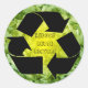 A glowing statement! Help promote a "green" message on this round template sticker with a green shredded, crinkled paper background. The text is centred within the Mobius Loop recycle symbol. Keep this environmental message or fill in the template block with your words. Or click "Customise it" to select a font style, size and colour you prefer. The entire design is customisable.