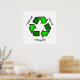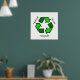 Two tone green recycling symbol poster with "reduce reuse recycle" text.
