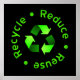 Black poster with a green recycling symbol surrounded by "Reduce - Reuse - Recycle" in green lettering.