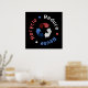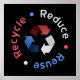 Black poster with a red, white and blue recycling symbol surrounded by "Reduce - Reuse - Recycle" in red, white and blue lettering.