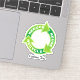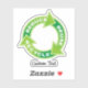 Green enviromental symbol, circle with arrows and the words reduce, reuse, recycle. Custom text.