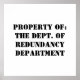 Property Of The Dept Of Redundancy Department message in a stamped stencil style text.