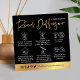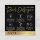 Black and Gold Reed Diffuser Care Instructions Card with modern script font and icons. This faux gold foil fragrance boutique diffuser care card includes 'how to use' instructions for oil air fresheners, as well as space for your logo and business details on the back. The perfect addition to your reeds diffusers packaging design.