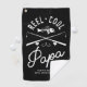 Reel Cool Papa Personalised Fishing Towel. Custom design featuring fishing rods and a fish. The perfect birthday, or father's day gift for any man who loves cool fishing gadgets and gear! Easily personalise this design with your own text. Convenient fishing bait towel with grommet ring clip.