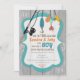Celebrate a baby shower with this adorable fishing invitation. Features cute fishing pole with colourful lures and a wood texture background.