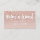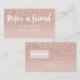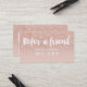Refer a friend with this modern, stylish makeup referral card with modern hand lettering style brush typography in white on a faux rose gold glitter and pastel blush pink trendy and elegant background. If you need any customisation, don't hesitate in contacting me